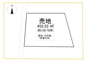 ※司法書士・ガス会社は売主指定※境界非明示※古家:建築日不明、付属物置あり※線引き前宅地のため属人性なし再建築可(要相談)★495-7(農地)使用貸借契約必須